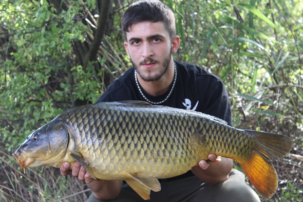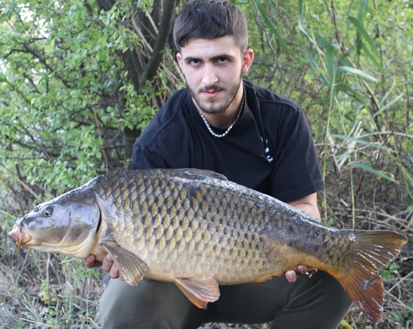 Gegen Mittag verschwanden die zwei anderen Fischer und so war ich nun alleine am Wasser. Der Wind wehte kräftig auf mein Ufer zu. Jetzt musste doch endlich mal etwas passieren, wenigstens ein Schnurschwimmer! Doch auch dieser blieb aus. Um eins am Nachmittag besuchten mich ein paar Freunde und brachten mir etwas zu Essen mit. Sie wollten unbedingt einen Fisch sehen, so hoffte ich nun umso mehr, dass wenigstens einer sich in die Maschen meines Keschers verirren mochte. Ich fütterte am Spot, an dem der Snowman lag, noch ein halbes Kilo Boilies großflächig rundherum. Das wirkte, denn gegen vier lief genau diese Rute ab. Nach einen tollen Drill lag ein halbstarker Schuppenkarpfen auf meiner Matte. Bei mir machte sich Zufriedenheit breit. Ich hatte mein Ziel erreicht, wenigstens einen Fisch zu fangen.