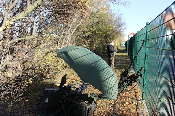 Gegen Vier musste mich Gregor leider verlassen, um sich zu Hause dem Lernen widmen zu „dürfen“. Ich jedoch blieb am Wasser, denn ich wollte jede Minute dieses wunderschönen Novembertages komplett auskosten. Kurz bevor mein Freund ging, konnte ich einen langen dunklen Schuppenkarpfen über meinem Spot rollen sehen. Die erste Aktivität eines Fisches an diesen Tag. Nun war ich wieder optimistisch, dass da noch etwas gehen könnte.