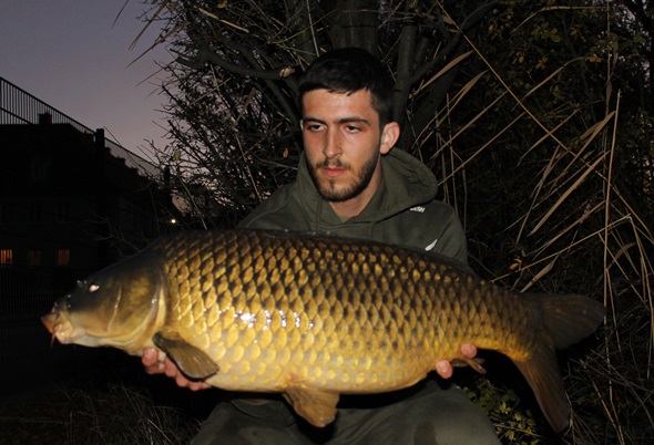 Als ich gerade meine Bissanzeiger etwas leiser stellen wollte, ging plötzlich die Rute ab, die auf dem Spot lag, wo ich den Karpfen rollen gesehen hatte. Der erste Part des Drills war eher ernüchternd, mein Kontrahent wehrte sich nur wenig. Doch kurz vorm Ufer fiel wohl erst auf, dass die ganze Sache einen Haken hatte, und er schoss immer wieder mit voller Kraft zurück ins Freiwasser. Doch auch die Kraftreserven des größten Kämpfers gehen irgendwann aus und so konnte ich meinen letzten Karpfen des Jahres 2015 auf die Matte legen. YESSS! Nach dem Fotoshooting mit dem lang gezogenen Schuppenkarpfen packte ich zufrieden ein und trat die Heimfahrt an.