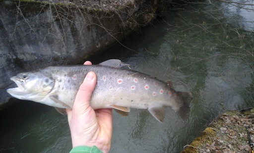 Daher versuchte ich es mit einem 0815 Mepps, bei dem ich eigentlich dachte, dass nach Saisonstart keine Forelle Interesse zeigt.