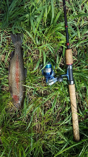 Auch eine 34er Regenbogenforelle konnte meinen Maden dann einfach nicht widerstehen.